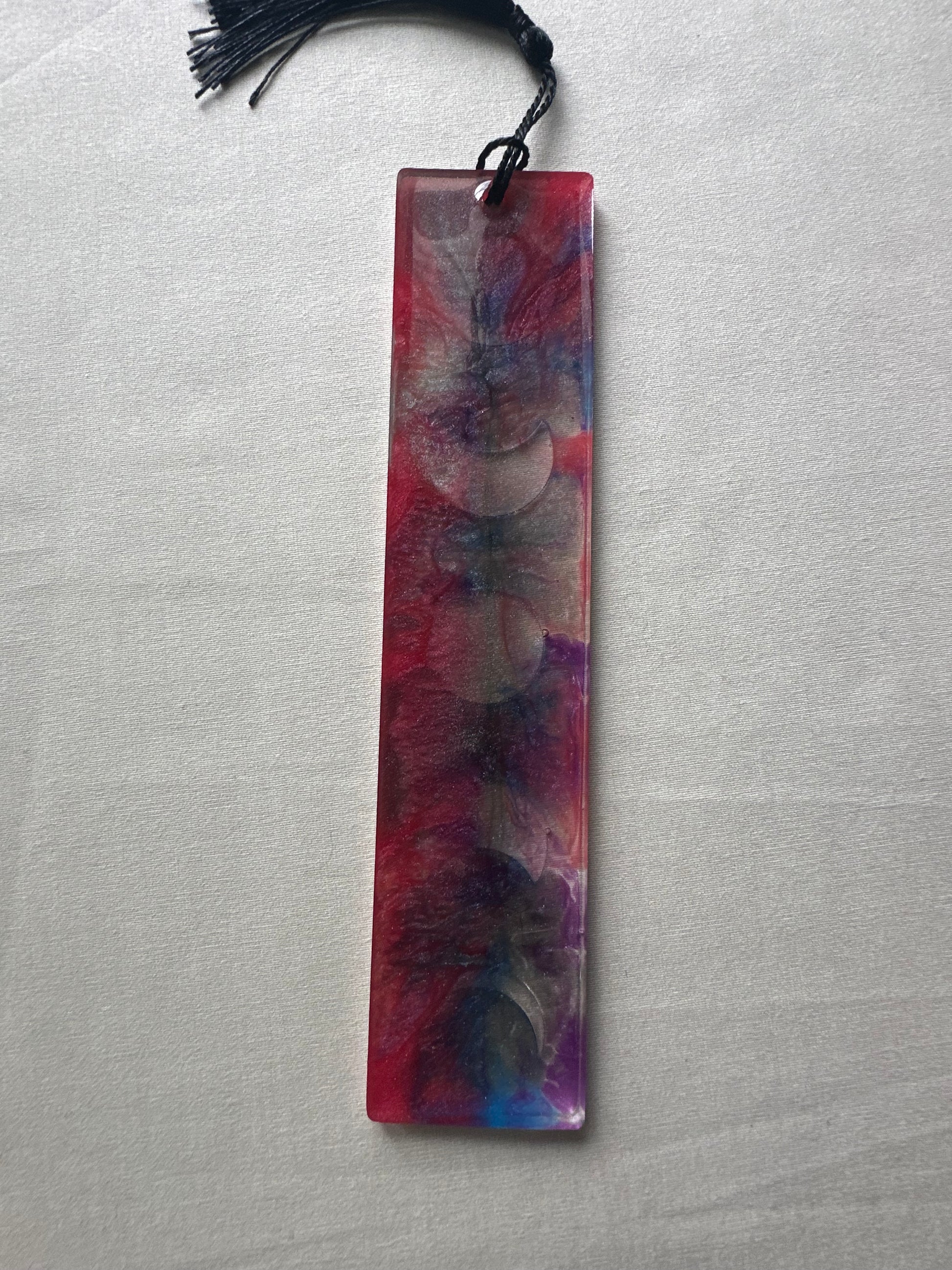 Mark your place with the magic of the moon. Each handcrafted bookmark features a stunning moon phase design encased in glossy resin, creating a mesmerizing blend of cosmic colors that shift and shimmer in the light.